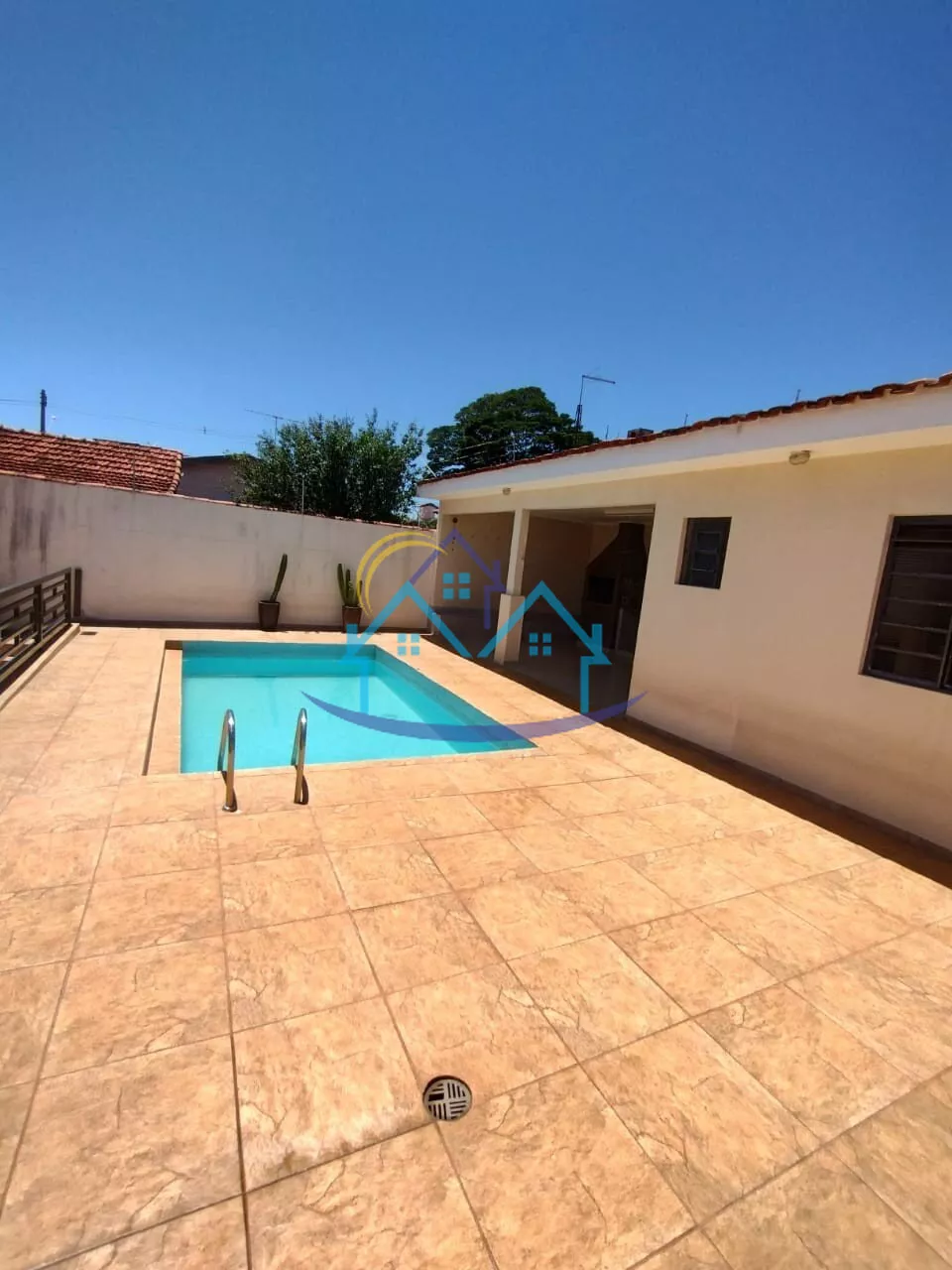Área de lazer com churrasqueira e piscina