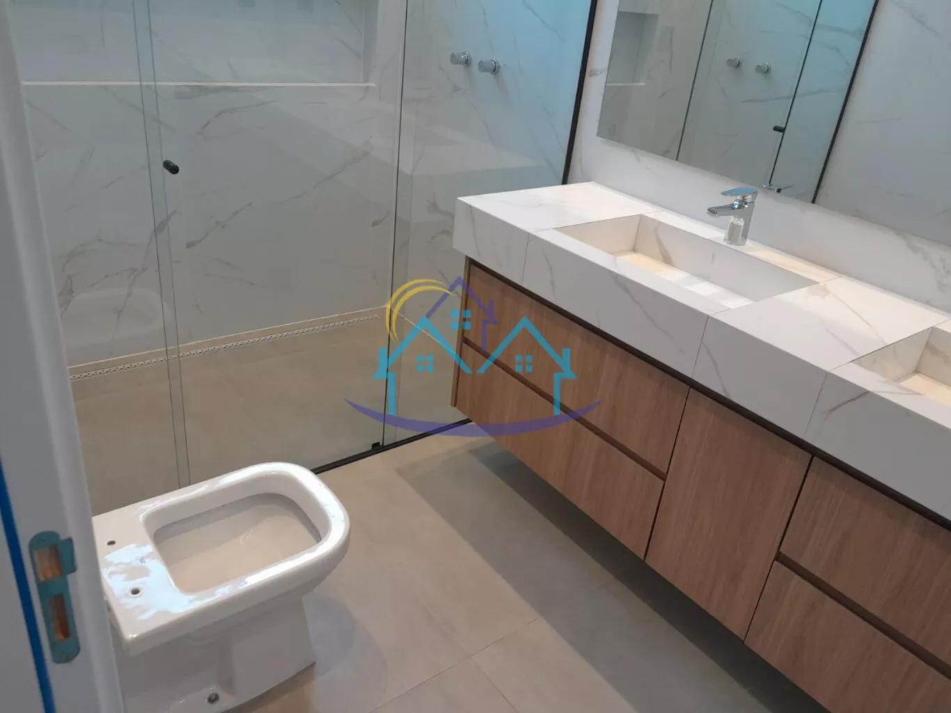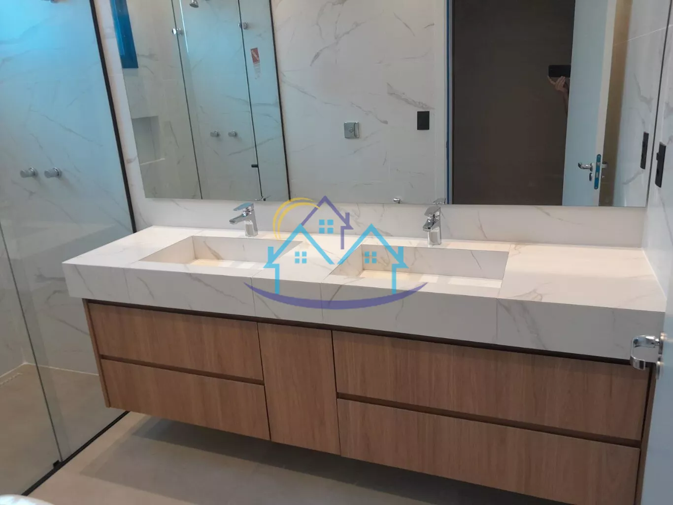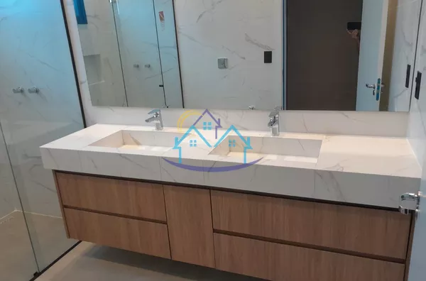 Bancadas esculpidas todos os banheiros e lavabo
