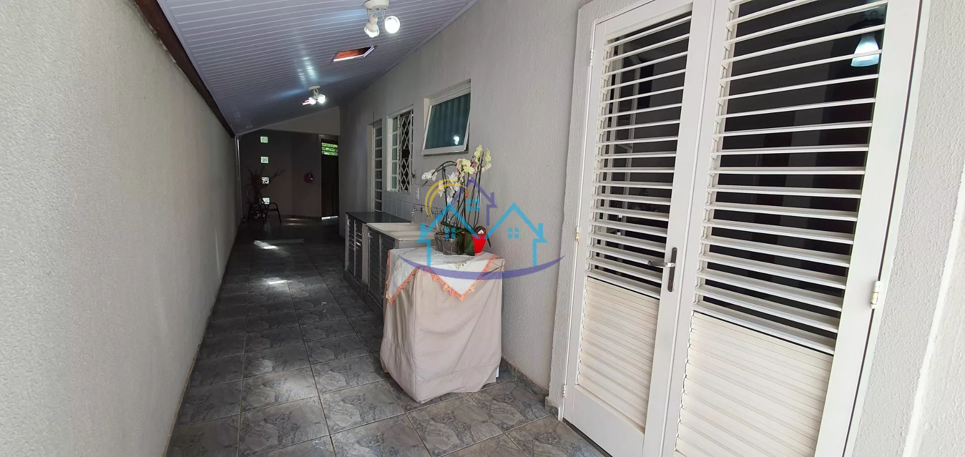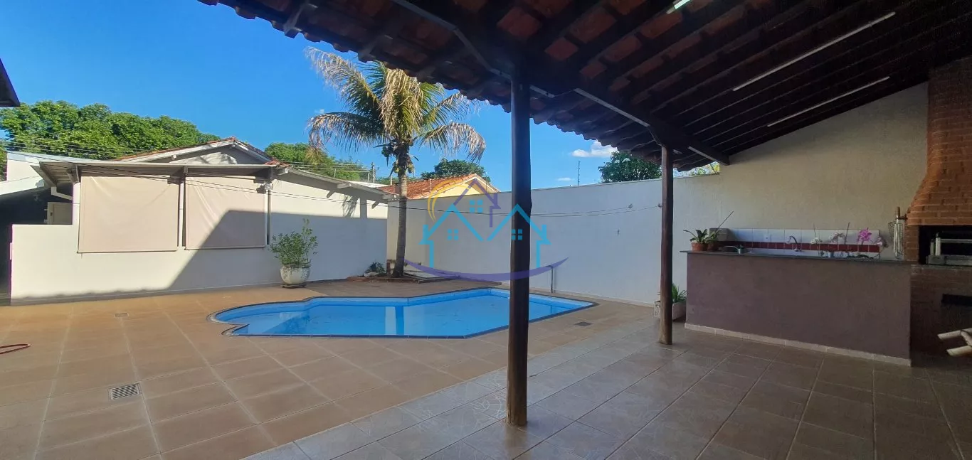 03 quartos Sala Cozinha com armários Banheiro Area de lazer com piscina e varanda gourmet Quarto de despejo Area de serviço Quintal Garagem para dois carros Portão eletrônico Interfone