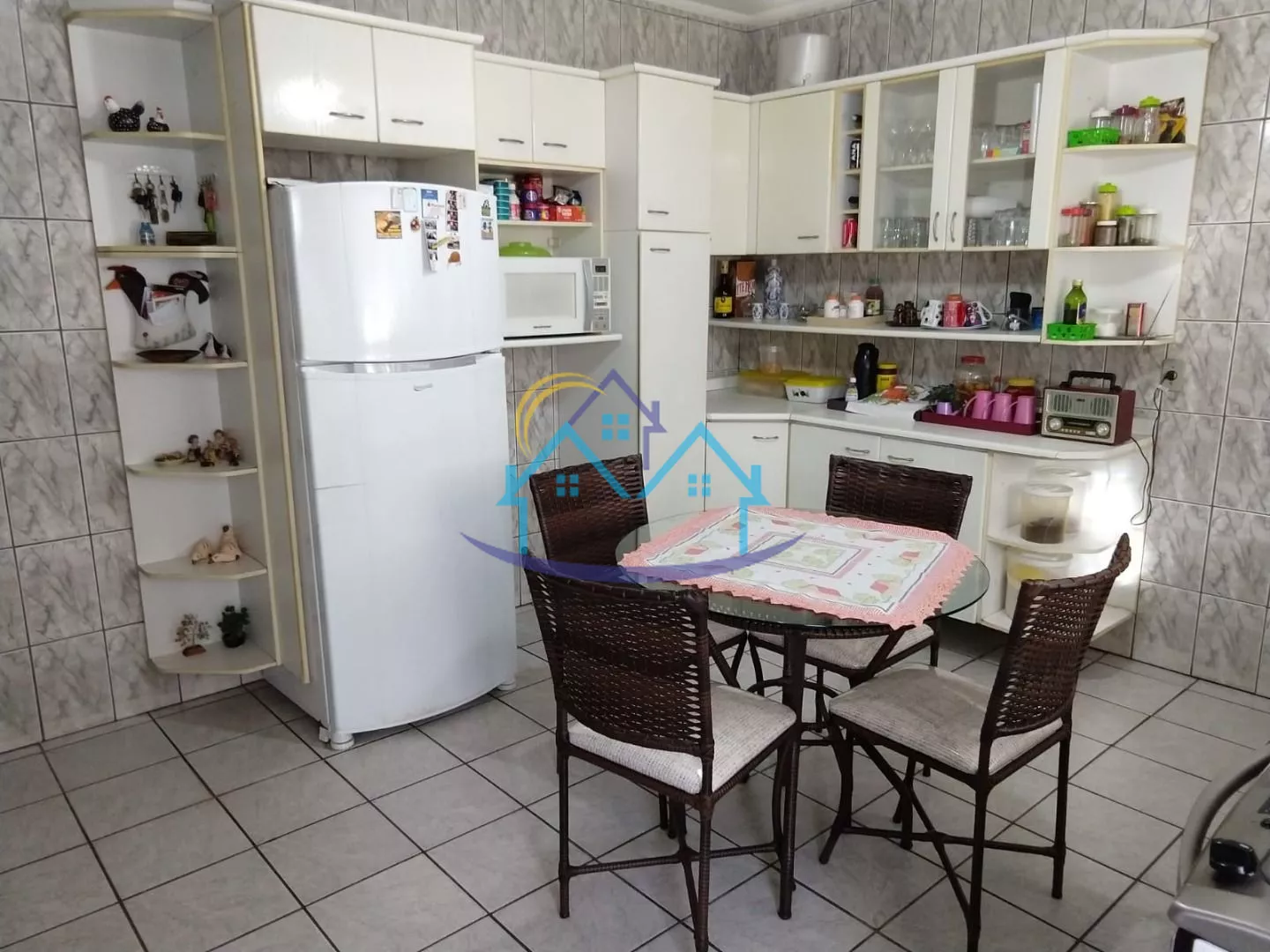 Casa com 2 quartos e 1 banheiro no andar de cima, 1 quarto possuí sacada ampla. Na parte de baixo o imóvel tem 3 salas grandes, cozinha e 1 banheiro. Garagem coberta para 4 carros.