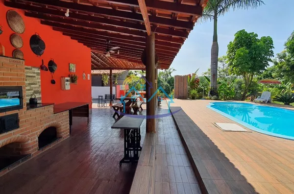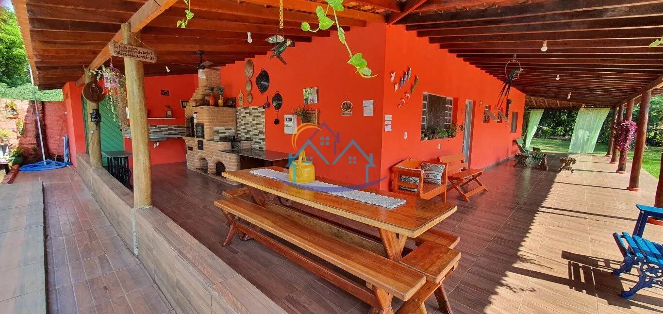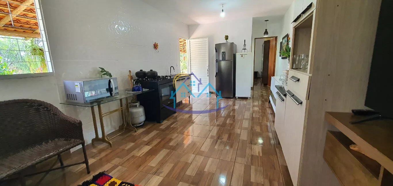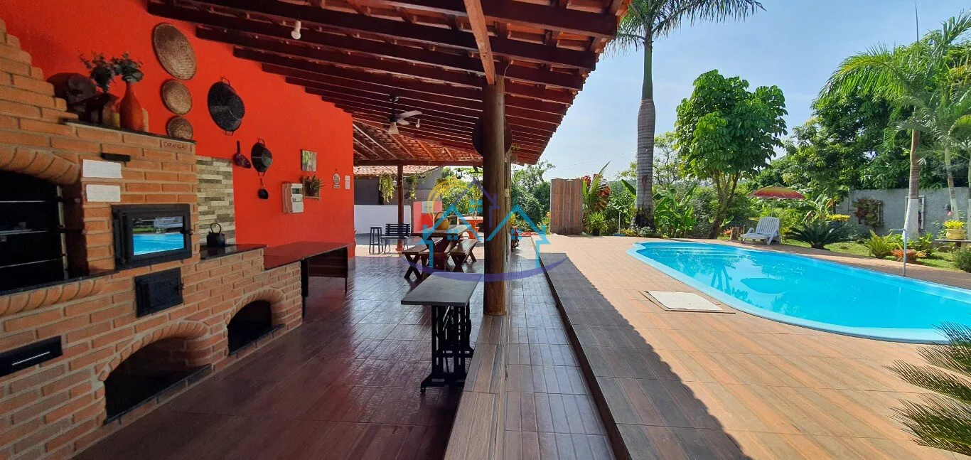 03 amplos quartos, sendo um suíte, sala, cozinha, banheiro social, sala de jogos, banheiro masculino e feminino, churrasqueira forno e fogão a lenha, piscina 4 x 8, espaço para camping, campo de futebol.